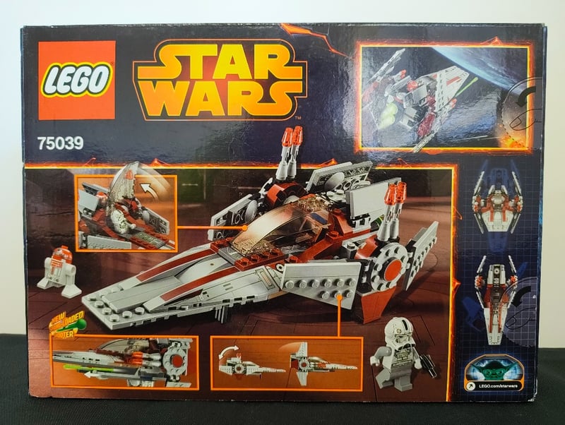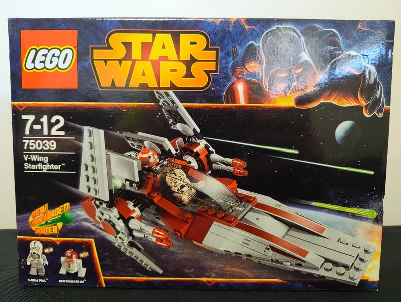 LEGO STAR WARS V-WING STARFIGHTER SET 75039Item Size: Height: 12cm, Width: 38cm, Depth: 28cm, Weight: 3KgLego Star Wars V-Wing Starfighter (Set 75039) Featuring The Distinctive Red And White Starfighter With Poseable Wings, Cockpit With Opening Canopy, Detailed Landing Gear, Dual Laser Cannons, And Includes Minifigures Of V-Rrumm Pilot And Astromech Droid. Original Box With Printed Graphics Showing Ship Specifications And Featured Characters From The Clone Wars Era.Condition: Good - Refer To Images584518+86