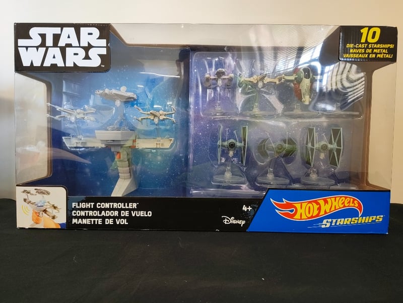 STAR WARS HOT WHEELS STARSHIPS FLIGHT CONTROLLER PLAYSET WITH 10 DIE-CAST STARSHIPSItem Size: Height: 25cm, Width: 55cm, Depth: 12cm, Weight: 8KgHot Wheels Star Wars Starships Collection Featuring Flight Controller Handheld Accessory And 10 Die-Cast Metal Starships Including X-Wing Fighters, Tie Fighter, Rebel Snowspeeder, Millennium Falcon, And Advanced Imperial Vessels. Original Packaging With Retail Display Box Intact, Disney/Mattel Licensed Merchandise For Ages 4+.Condition: Good - Refer To Images584518+180