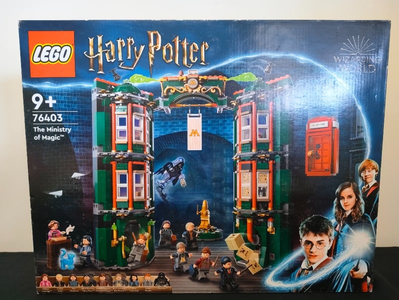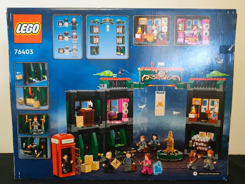 LEGO HARRY POTTER "THE MINISTRY OF MAGIC" SET 76403Item Size: Height: 65cm, Width: 45cm, Depth: 15cm, Weight: 5KgLego Harry Potter Set 76403 "The Ministry Of Magic" Building Set Features An Intricate Multi-Level Structure With Green And Red Brick Detailing, Including A Central Chamber With Golden Ornamental Elements, Dual Tower Facades With Windowed Sections, And A Functional Red Telephone Booth. The Set Includes Approximately 15 Minifigures Representing Key Harry Potter Characters, Decorative Accessories Including Wands, Scrolls, And Furniture Pieces, Plus A Magical Brick-Built Accessory Element. OriginalCondition: Good - Refer To Images584518+87