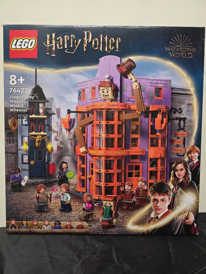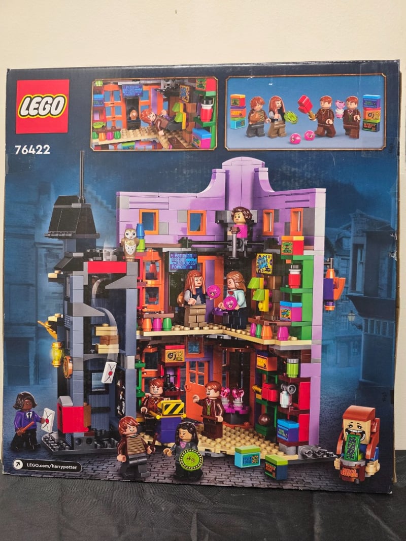 LEGO HARRY POTTER 76422 DIAGON ALLEY WEASLEYS' WIZARD WHEEZES BUILDING SETItem Size: Height: 30cm, Width: 30cm, Depth: 15cm, Weight: 0.2KgLego Harry Potter Set 76422 Featuring The Iconic Diagon Alley Weasleys' Wizard Wheezes Shop. Comprehensive Multi-Level Building Includes Vibrant Purple And Orange Façade With Detailed Window Treatments, Interior Rooms Across Three Floors, And Detachable Dark Tower Structure. Includes 11 Minifigures With Accessories. Original Sealed Packaging With Complete Instruction Materials. Suitable For Ages 8+.Condition: Good - Refer To Images584518+113