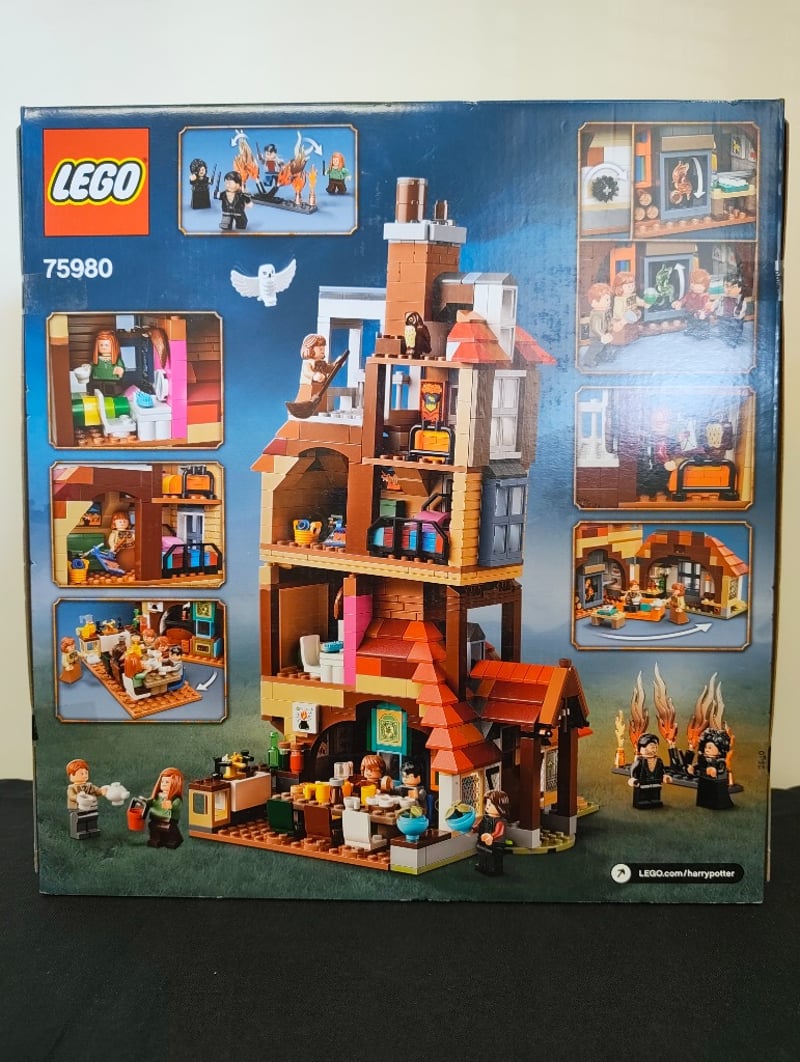 LEGO HARRY POTTER ATTACK ON THE BURROW SET 75980Item Size: Height: 50cm, Width: 35cm, Depth: 15cm, Weight: 5KgLego Harry Potter Set 75980 "Attack On The Burrow" Featuring A Detailed Multi-Story Brick Structure With Red-Tiled Roof, Chimney Stack, And Interior Room Configurations. Set Includes Minifigures And Accessory Elements Depicting Scenes From The Harry Potter Film Series. Appears Complete With Original Packaging Featuring Professional Product Photography And Character Imagery.Condition: Good - Refer To Images584518+151