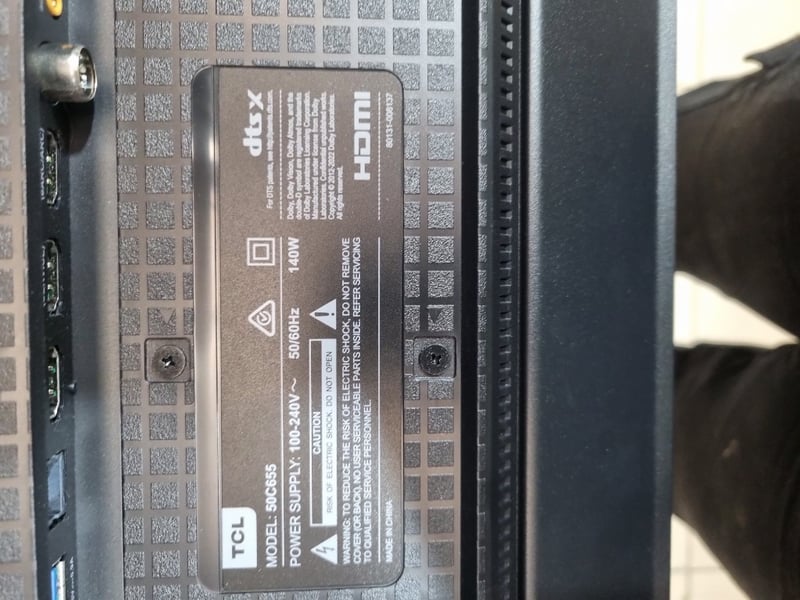 TCL television HDMI, 50", model number 50C655. Serial 2407ALZ222273B00116Note: untested,signs of wear