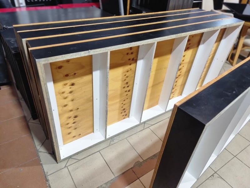 Wooden shelving units, 5 shelf storage. Sold as lotNote: signs of wear