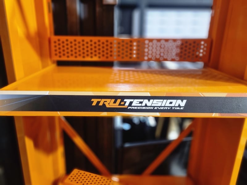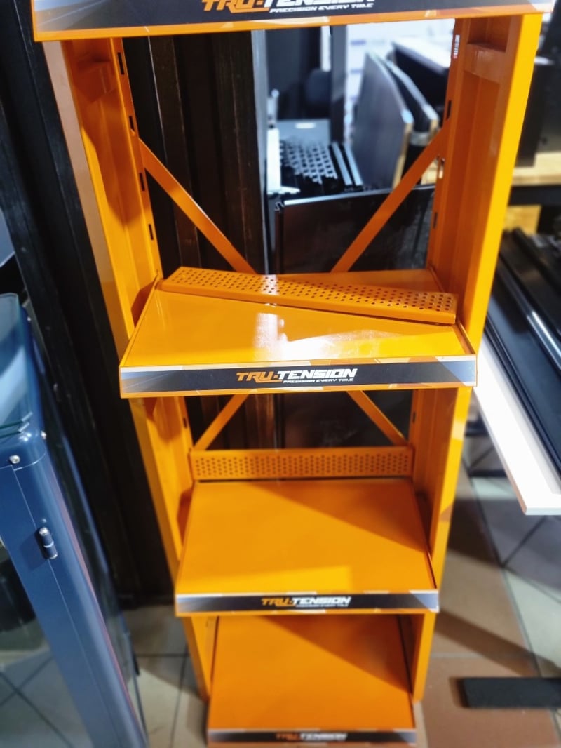 Industrial storage rack, orange, 4 shelves,metal frame Note: signs of wear