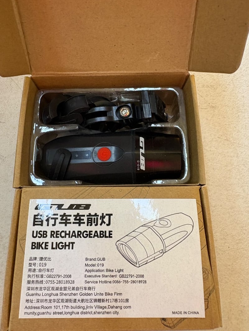 RRP $60 Gub Headlight 019 GUB 019 Bicycle Headlight – Bright, Durable, and USB Rechargeable Illuminate your ride with the GUB 019 Bicycle Headlight, designed for both primary lighting and auxiliary illumination. Equipped with high-brightness LED light beads, this headlight delivers up to 500 lumens with an 85-degree floodlight, ensuring excellent visibility on the road. Featuring a 2000mAh battery, the GUB 019 offers long-lasting performance and supports USB direct charging for convenience. With three lighting modes—constant brightness and burst—you can easily adjust the light to suit your riding conditions. Built for reliability, it has an ordinary waterproof design, making it suitable for various weather conditions. Weighing just 154 g (net), this compact yet powerful headlight is the perfect companion for your cycling adventures, providing enhanced safety and visibility wherever you go. BID PER EACH MUST TAKE 2