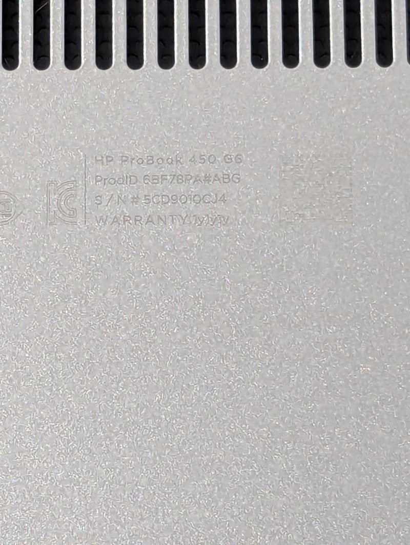 Laptop PC – HP ProBook 450 G6, 15.6” screen, Core i5 processor, 8Gb RAM, 256Gb SSD, S/N: 5CD9010CJ4