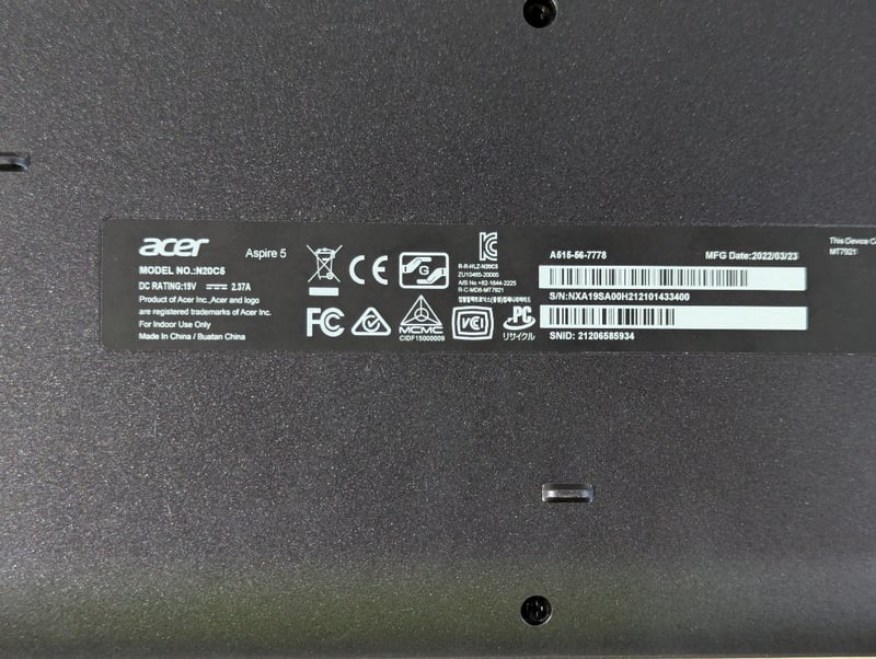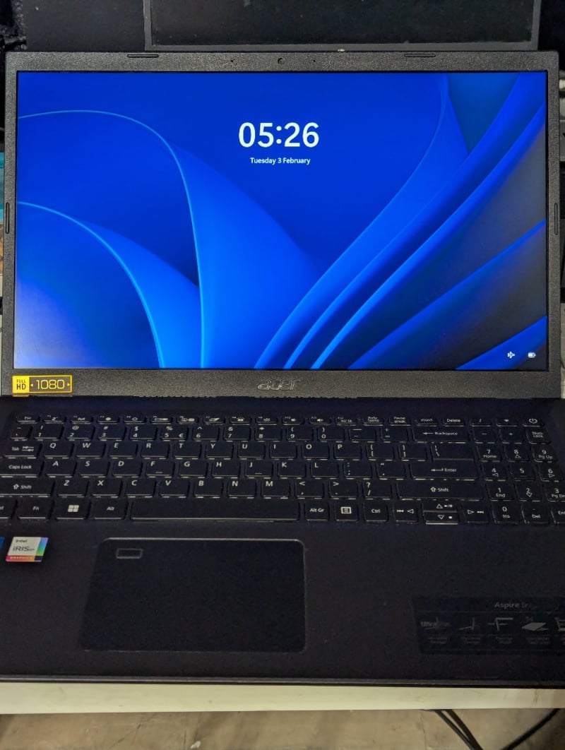 Laptop PC – Acer Aspire 5, 15.6” FHD screen, Core i5 processor, 8Gb RAM, 256Gb SSD, S/N: NXA19SA00H212101433400 Note: no charger supplied