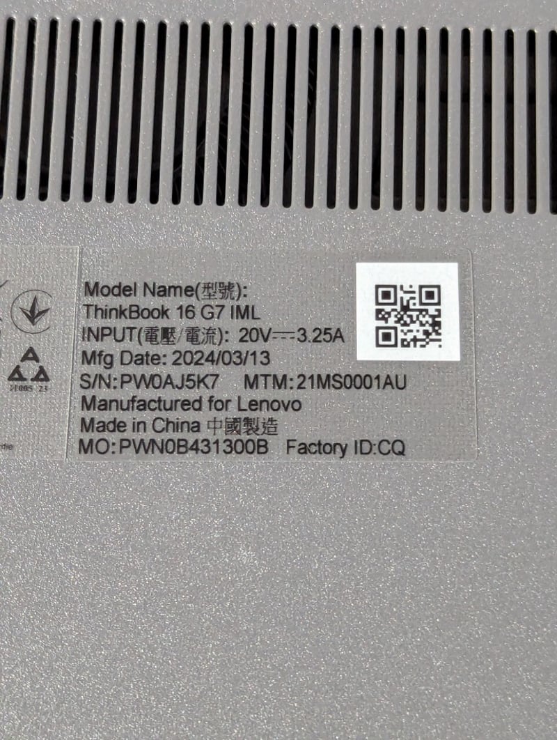 Laptop PC – Lenovo ThinkBook, 16” screen, 8Gb RAM, 256Gb SSD, S/N: PW0AJ5K7 Note: charger included