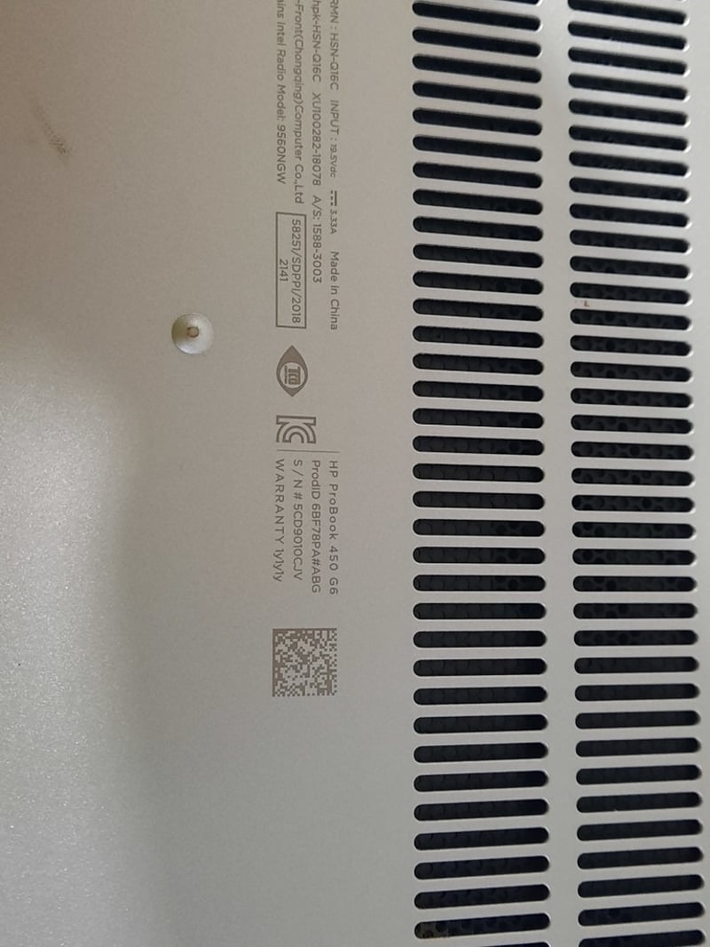 Laptop PC – HP ProBook, 15.6” screen, Core i5 processor, 8Gb RAM, 256Gb SSD, S/N: 5CD9010CJV Note: charger supplied
