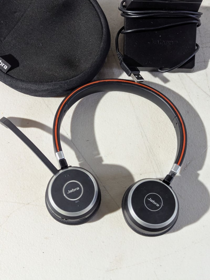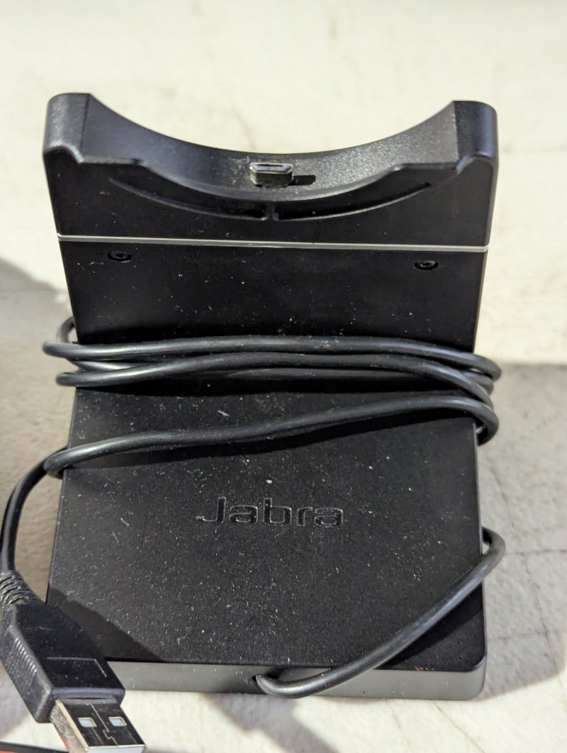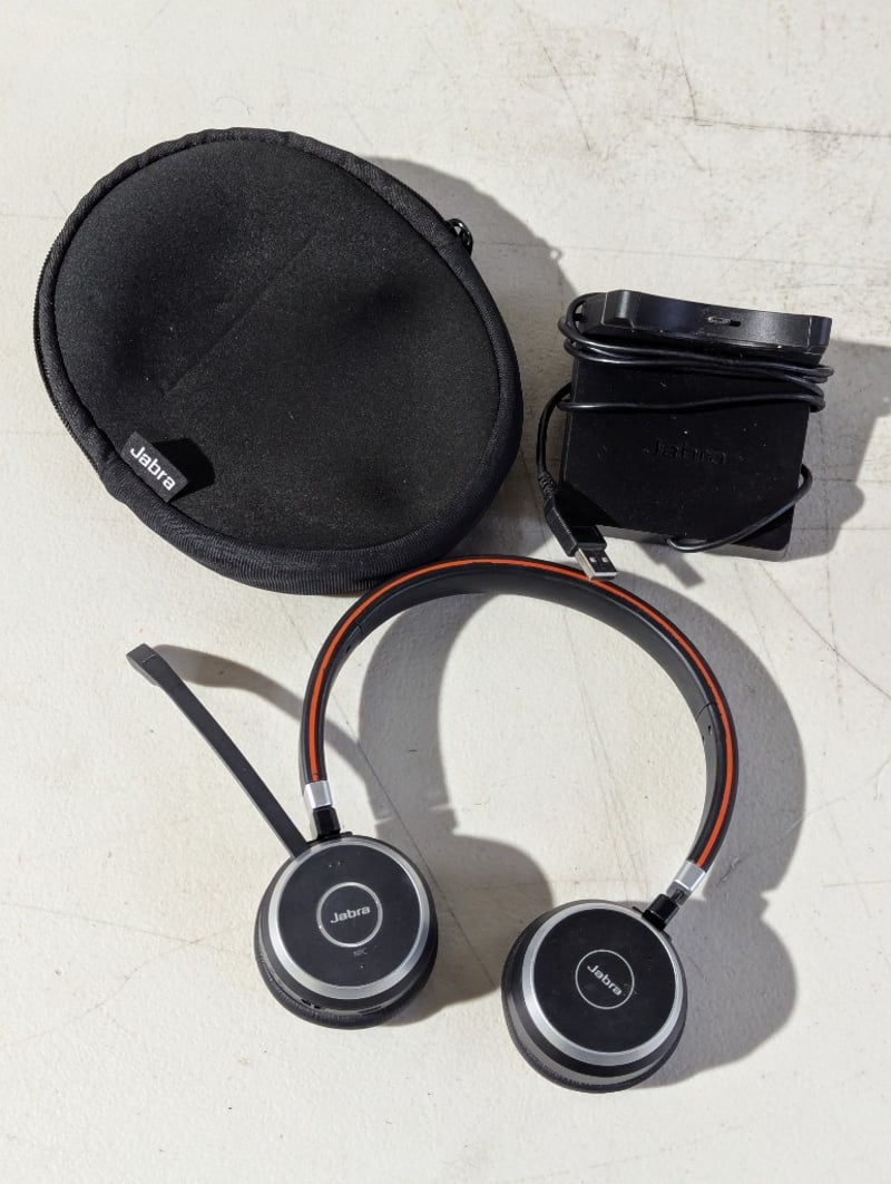 Headphones – Jabra wireless headset with charging stand Note: storage case supplied