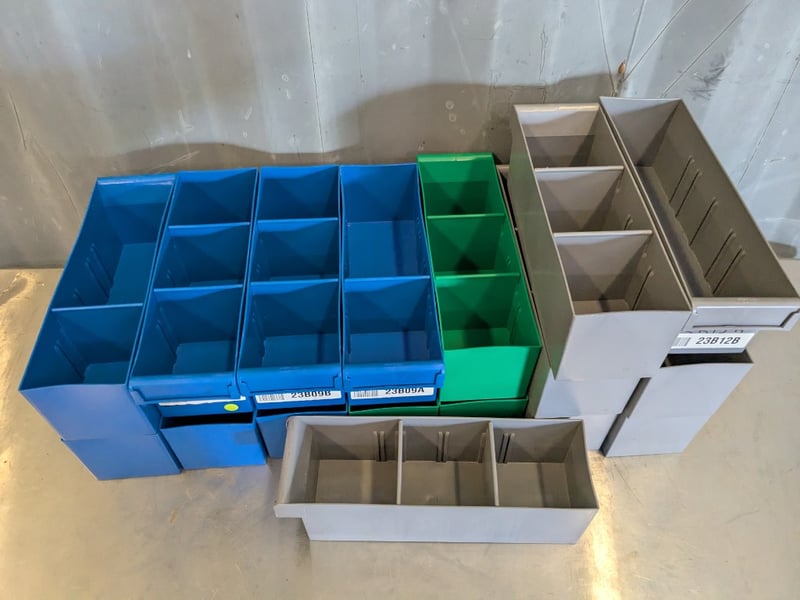 Fischer Plastic Storage Trays - Blue, Grey, Green