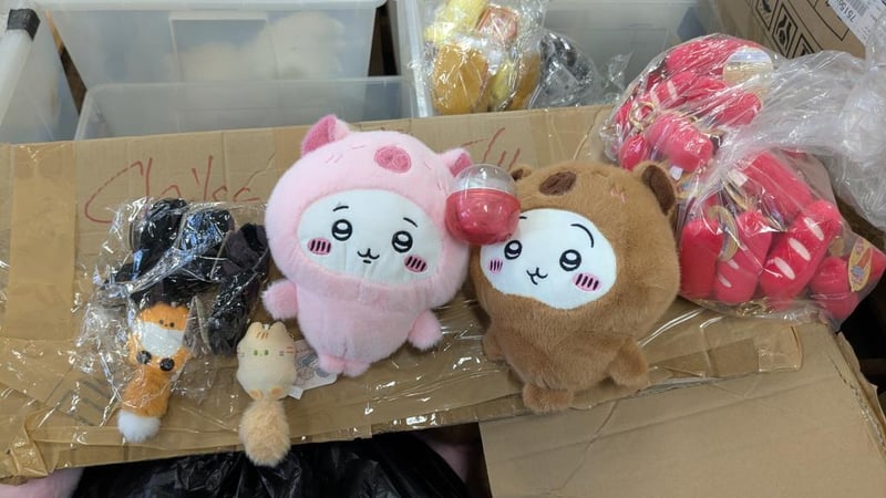 Prize Stocks - Comprising cartons and tubs of assorted plush toysIncluding; Animal Keychains, Chiikawa, Hello Kitty Prize ballsSold as a lot.Note: Signs of wear.