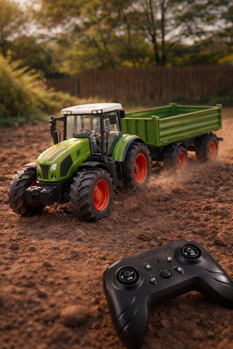 RC Farm Tractor and Trailor Tipping Dump Trailer 1/24 Scale 2.4G Electric Agricultural Machine Transport Vehicle With Lights & sound Long Play Time 25 Metre Remote Distance Approx 41cm in Length USB Charging Cable Awesome Cabin Detail trailer drop sides and Tilt 2 x AA Remote Batteries not included (BRAND NEW IN BOX) (Sometimes in the creation of AI pictures and videos there may be very small differences in the product itself or size comparison, so these images are used only for the visual effect of the product shown, however the exact product with its specifications and size is always shown in the later photos so please be aware of this.)