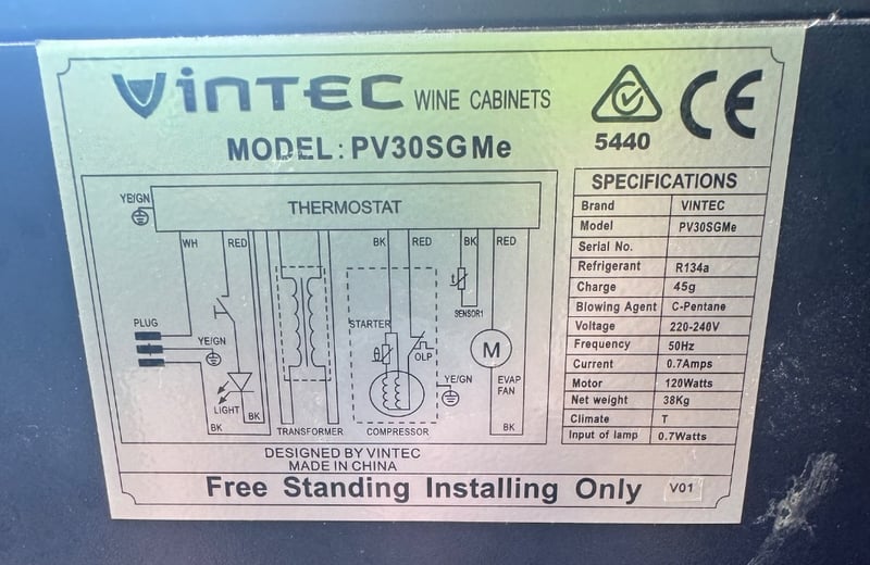 Vintec Wine fridge Model: PV30SG Me Note: Working condition unknown