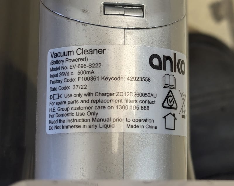 Anko handheld vacuum cleaner, model: EV-696-S222, item length: 105cm