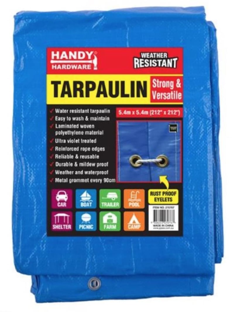 Tarpaulin, Handy Hardware, 5.4m x 5.4m Weather Resistant Tarpaulin.