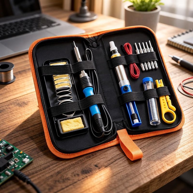 23 Piece Soldering Kit Pencil Grip Soldering Iron Soldering Iron Stand Zipper Close Case Solder Wire and Multiple tool Options (NEW IN PLASTIC) (Sometimes in the creation of images and videos there may be very small differences in the product itself or size comparison, so these images are used only for the visual effect of the product shown, however the exact product with its specifications and size is always shown in the later photos so please be aware of this.)