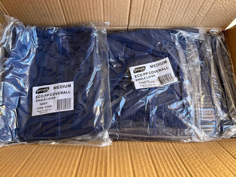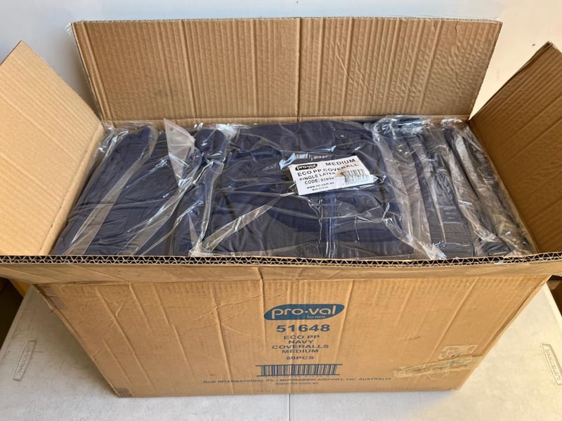 Carton of 50 Coveralls - Overalls Disposable Blue Medium Size SOLD AS 1 LOT