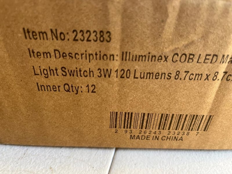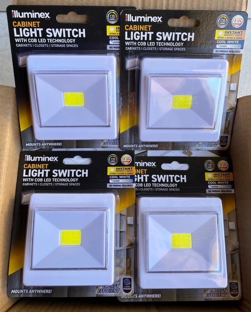 12 X Cabinet Light Switch COB LED, Cool White 87mm x 87mm x 20mm SOLD AS BULK LOT