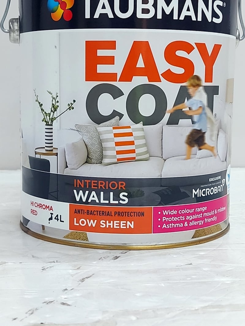 Paint, Taubmans, Easy Coat, Interior Walls, Low Sheen, Hi Chroma Red, 4L Tin