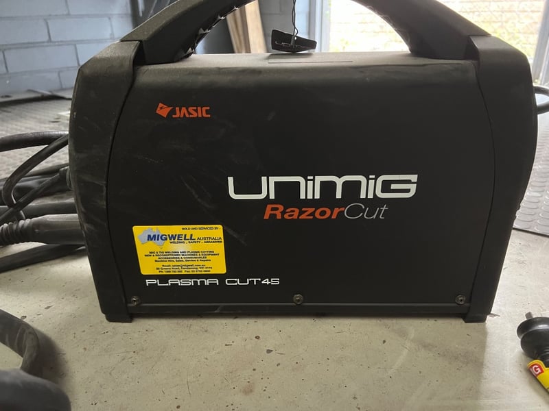 AIR Plasma cutter, unimig, razor 45, serial; AS/NZS 60974-1, 20A/88V - 45A/98V
