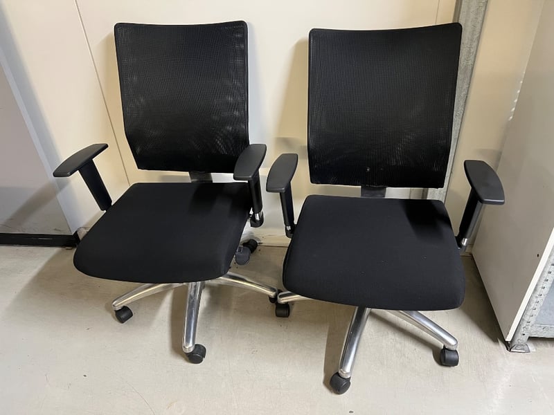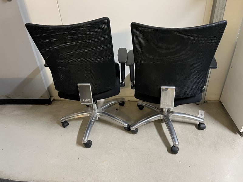 Desk chairs, Cleo style, black, height adjustable seat and armrests