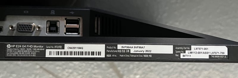 Desktop Monitors, HP, E24 G4 FHD, serial numbers; CN420115NQ and CN420115PM, includes; height adjustable stands