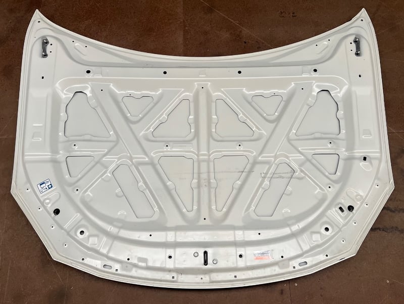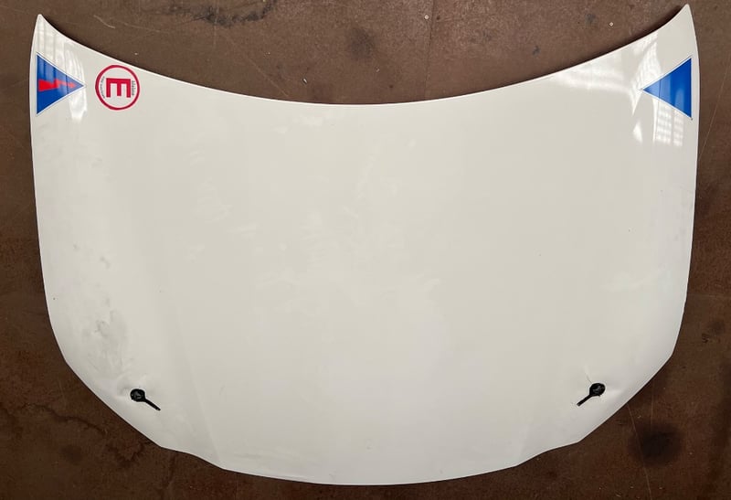 Car hood, white colour with safety pins and safety stickersDimensions approx; 115L x 145W x 2D CM