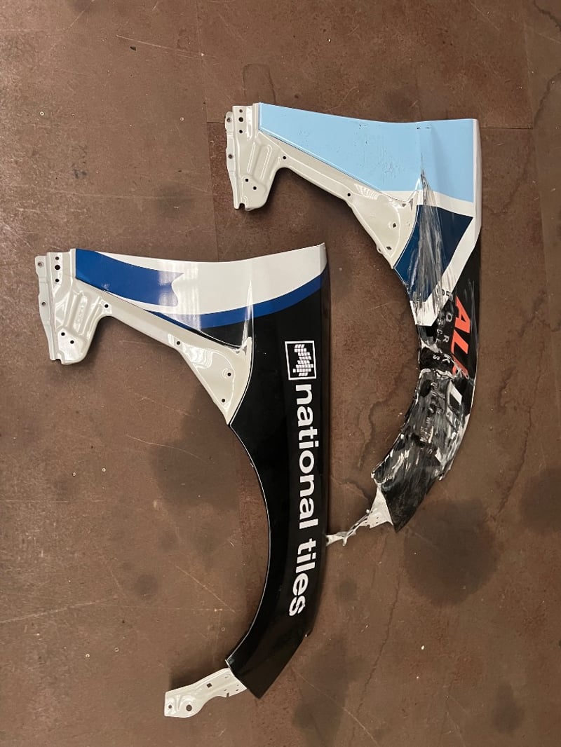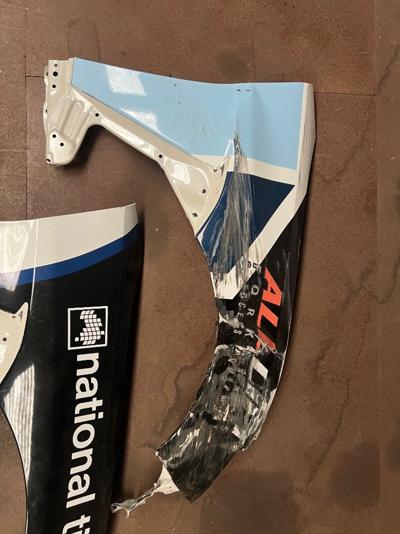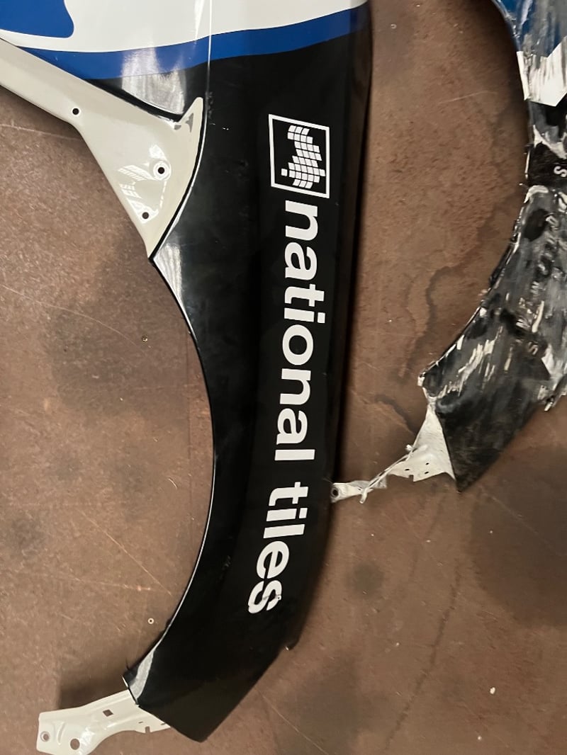 Race Car Fenders, featuring blue, black and white design, national tiles