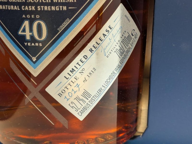 CAMBUS SINGLE GRAIN SCOTCH WHISKY AGED 40 YEARS LIMITED RELEASE, 70CL, 52.7% ABV