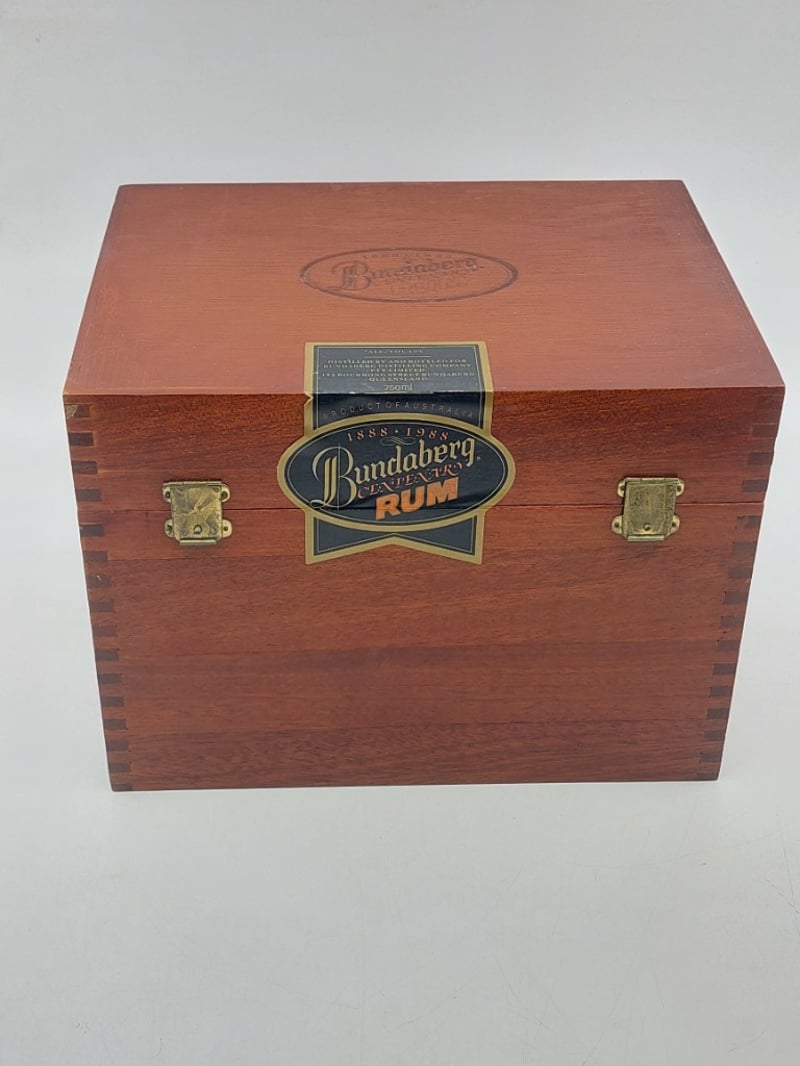Bundaberg Centenary Rum, Vat 100 specially selected to celebrate 100 years of Bundy Rum 1888-1988, 750ml, 40%alc/vol, Timber storage case, seal unopened