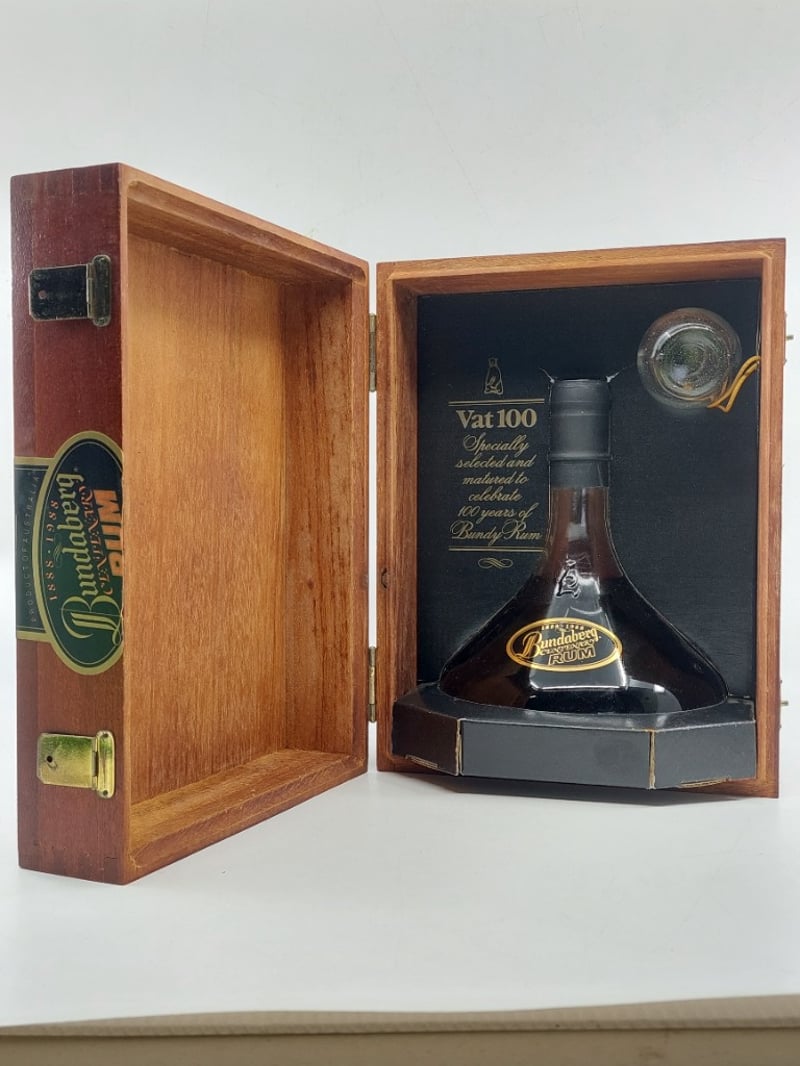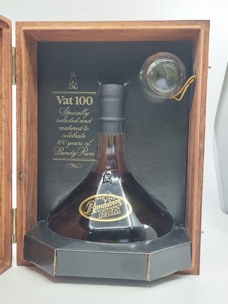 Bundaberg Centenary Rum, Vat 100 specially selected to celebrate 100 years of Bundy Rum 1888-1988, 750ml, 40%alc/vol, Timber storage case