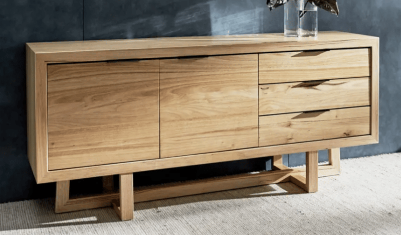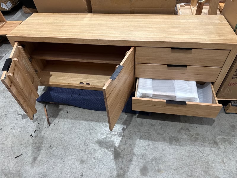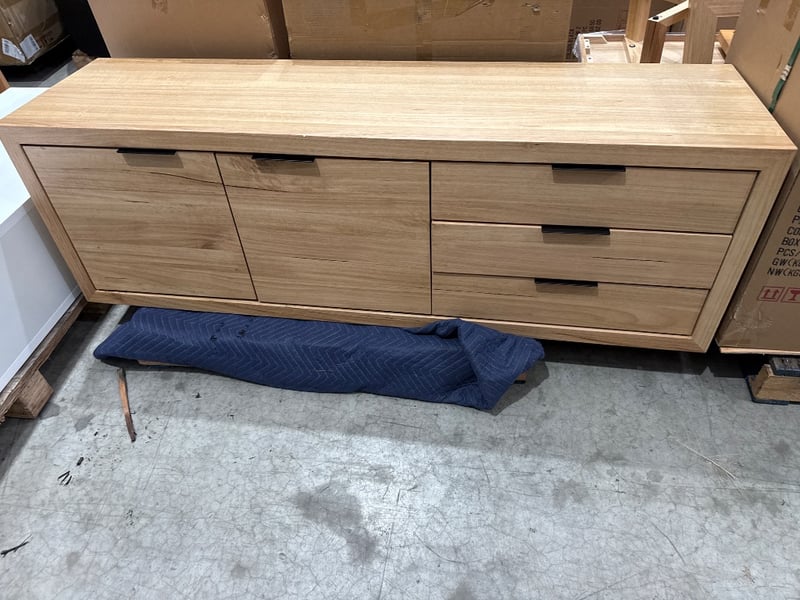 RRP:$2490, Buffet, Australian Oak. Geometric legs. Approx Dimensions: 184W x 52H x 65D