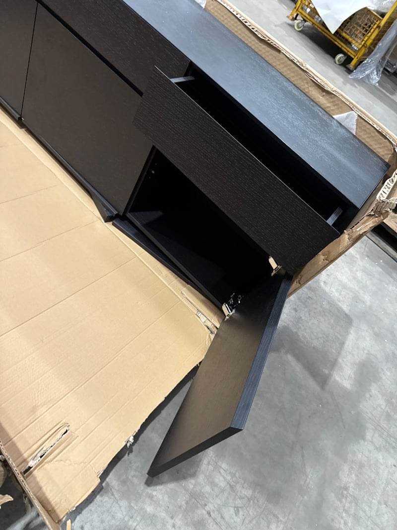 Buffet, Smoked Oak. 3 drawers. 3 doors. Approx dimensions- 186W x 50H x 73D
