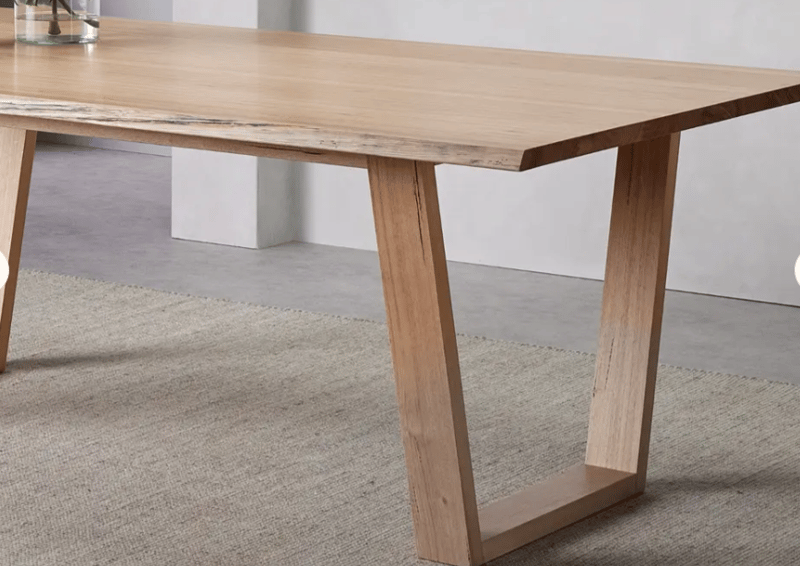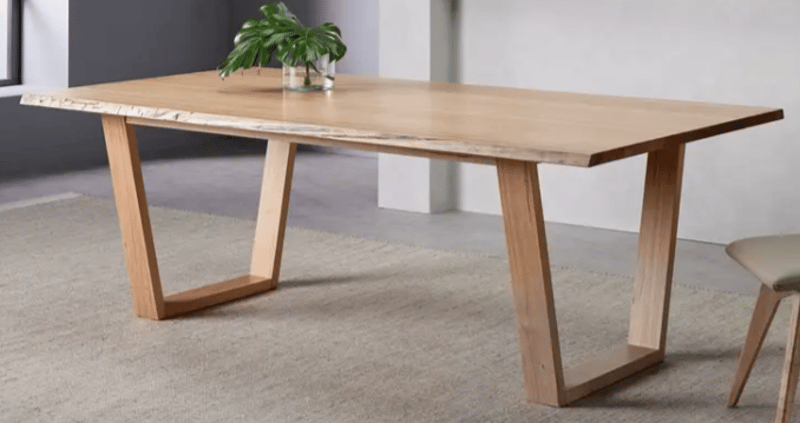 RRP: $2190, Dinning Table, Solid Tasmanian Oak. Solid geometric legs. Approx Dimmensions: 226W x 77H x 115D