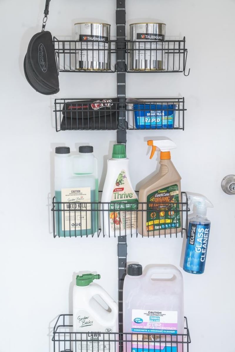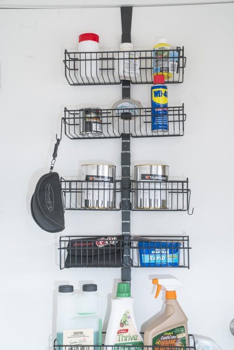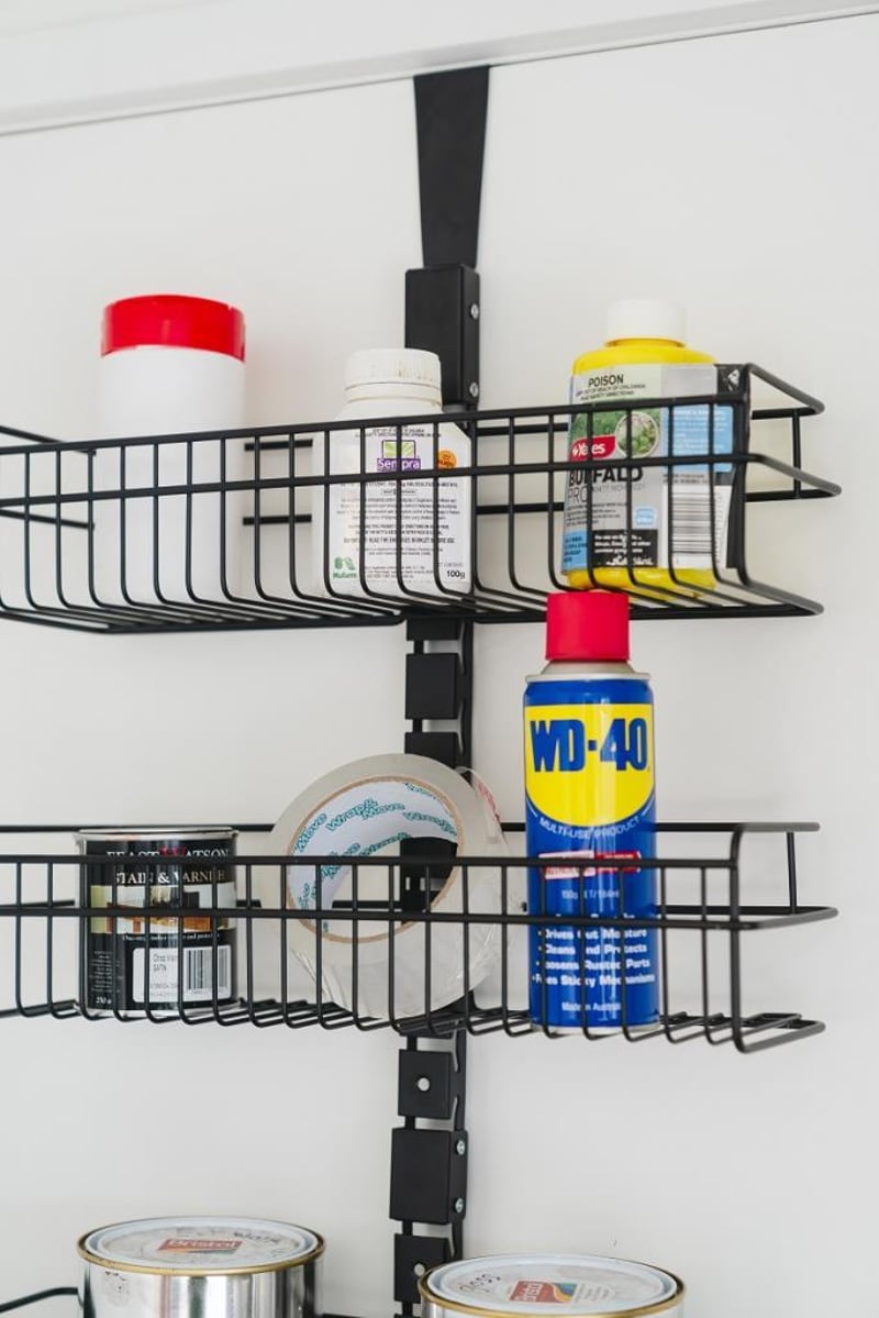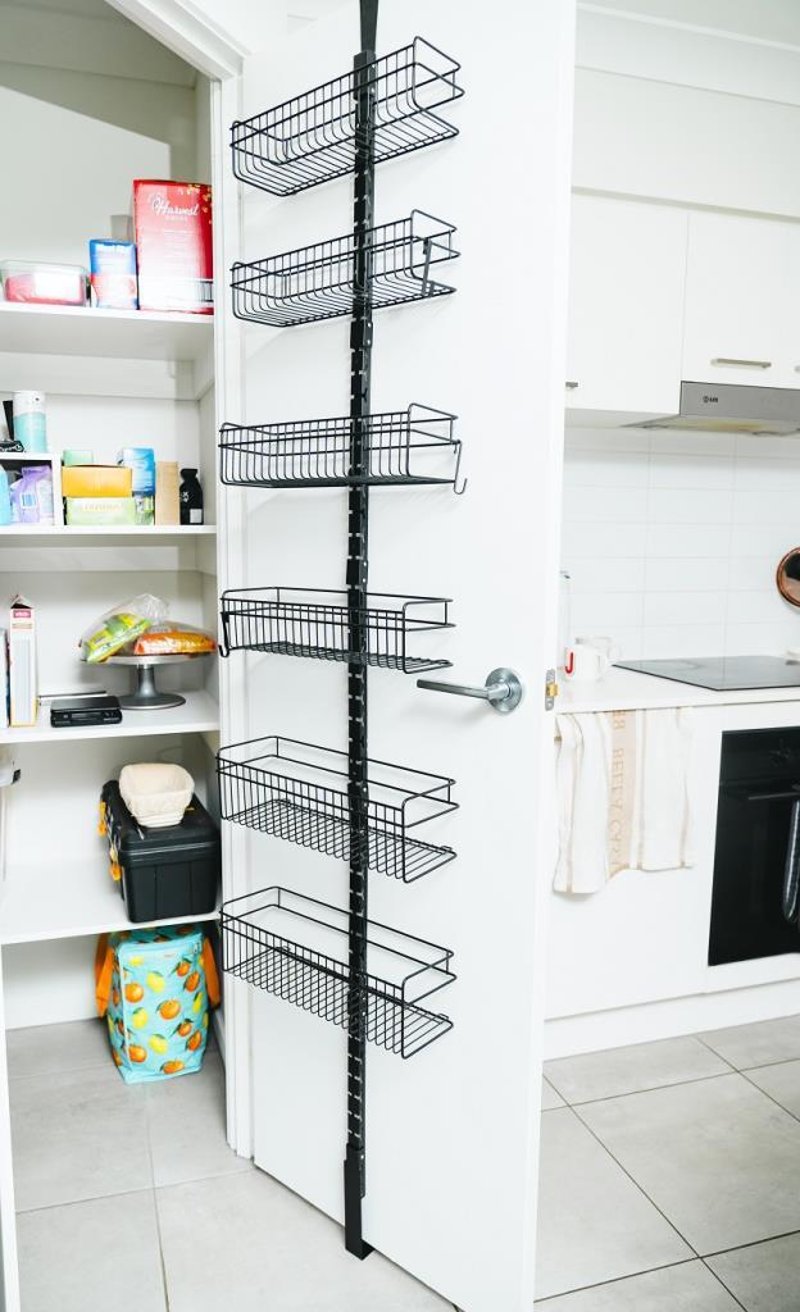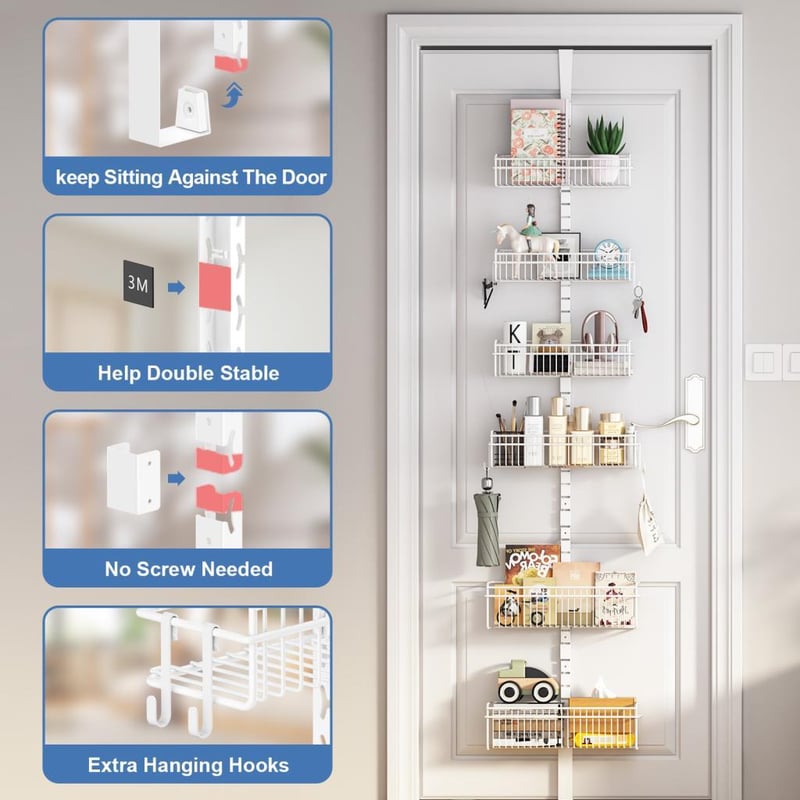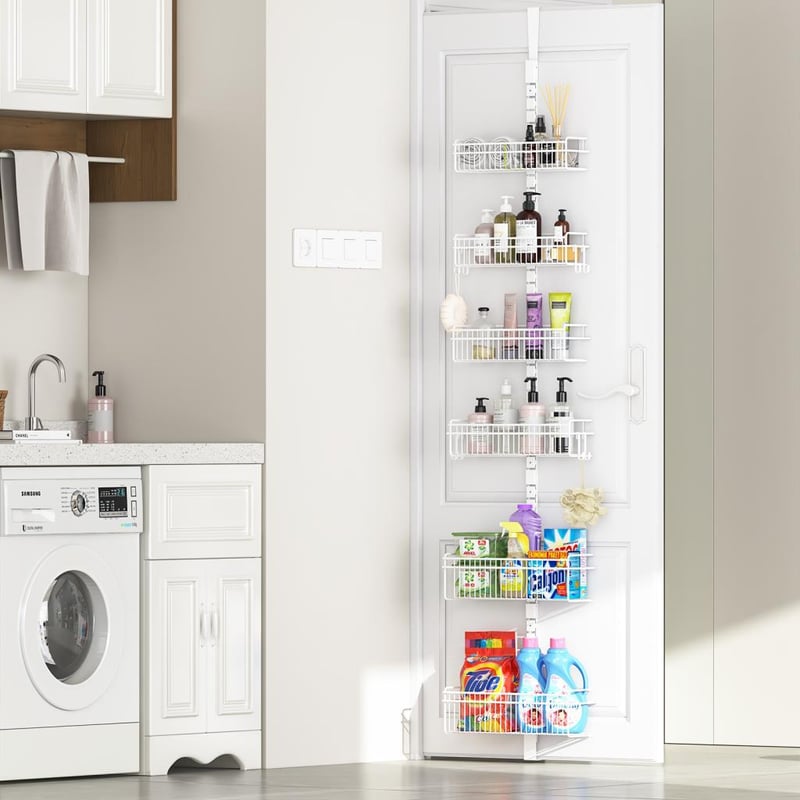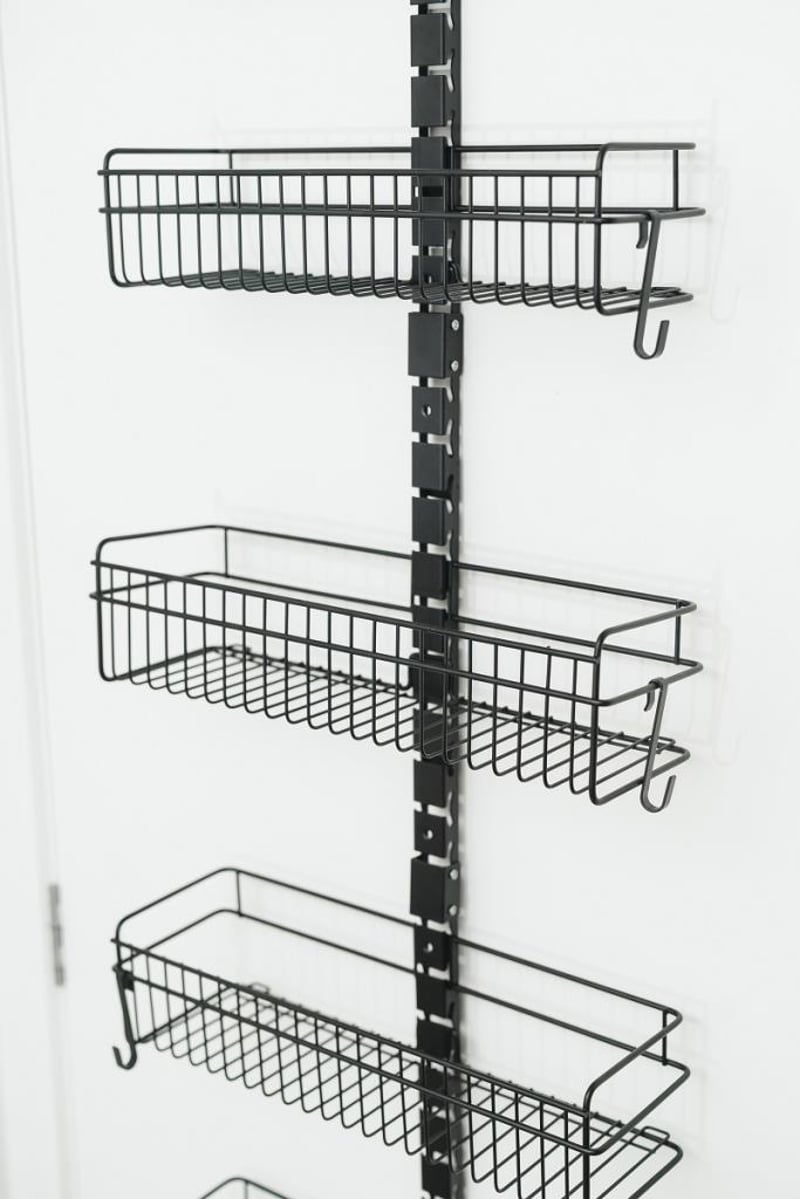 Over-the-door organizer, Item No#. WK830739-W This ready–made storage solution includes: • 2x Utility Over the Door Hooks and under the door • 2x Small Wire Baskets • 2x Medium Wire Baskets • 2x Large Wire Baskets • Utility Wall Band: 2.5cm x 1.6cm x 192.5cm • Small basket: 37.5cm x 7cm x 8.5cm • Medium basket: 39cm x 9cm x 10cm • Large basket: 41cm x 13.5cm x 12cm Colour: White Note: Images are for illustration purposes only. The item is supplied in white Bid per each