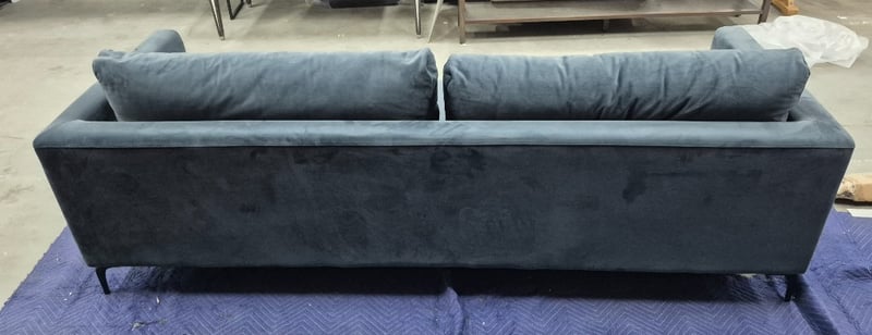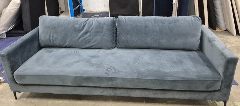 Couch grey blue velvet Dimensions height 70 width 251cm depth 91cm