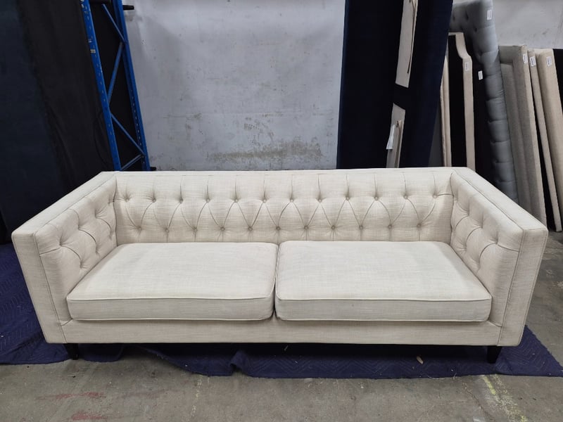 Couch cream fabricDimensions Height 78cm width 227cm depth 88cmBID PER EACH