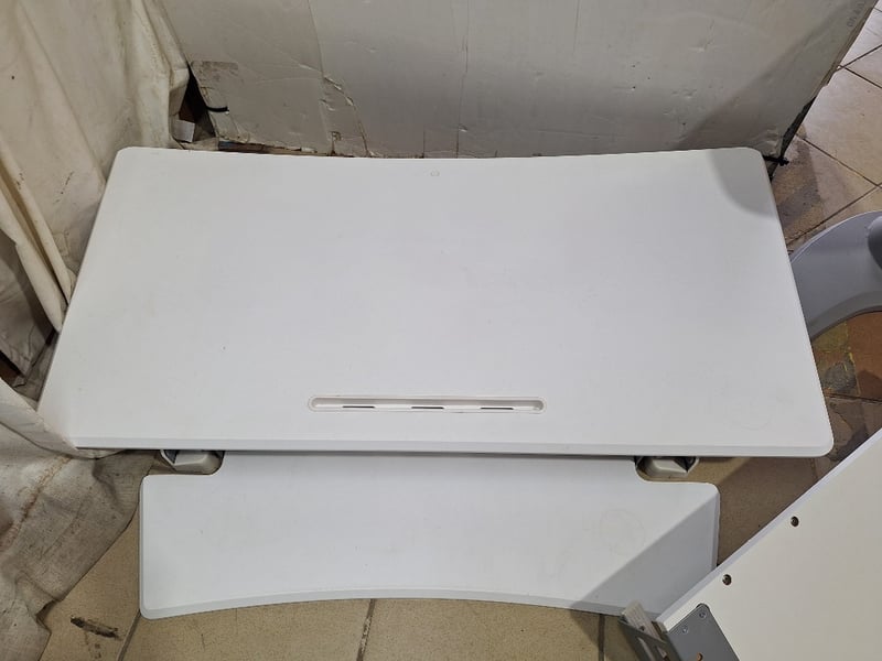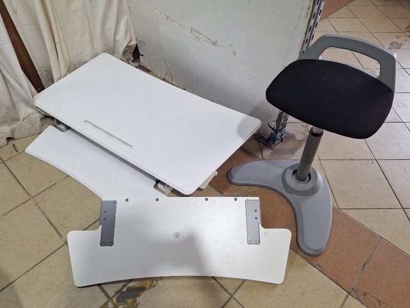 Sit-stand Desk Converter With Chair, Timber Style, White Finish