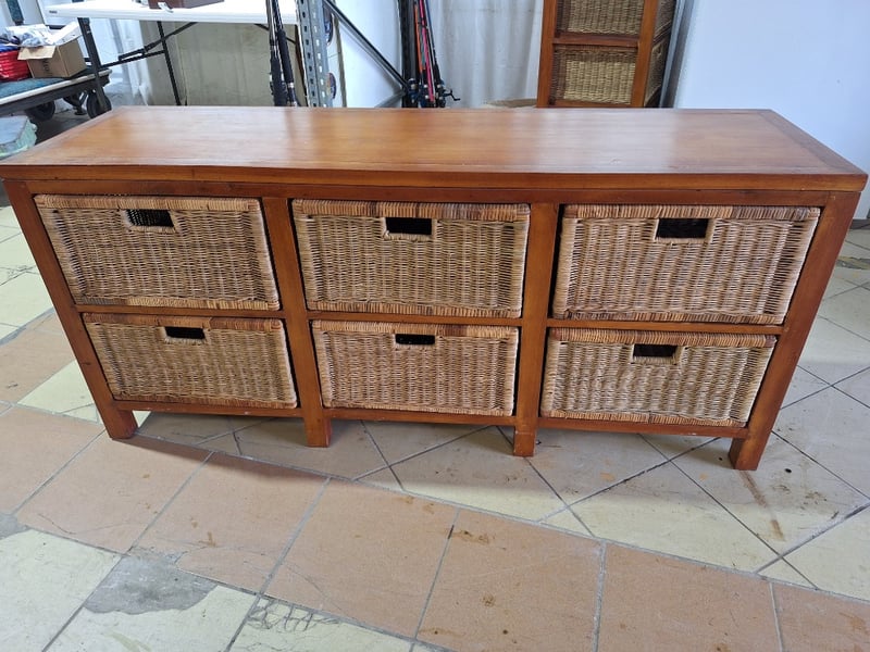 Dresser, Timber & Rattan Style, Natural Finish