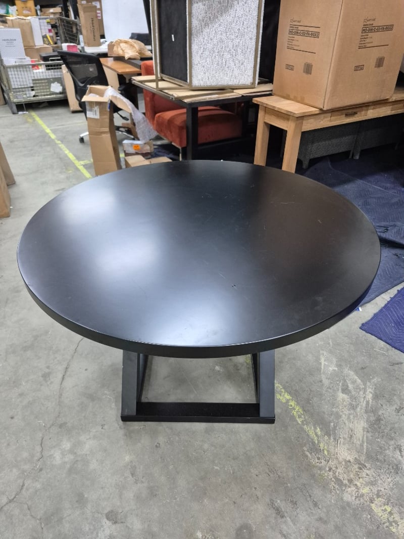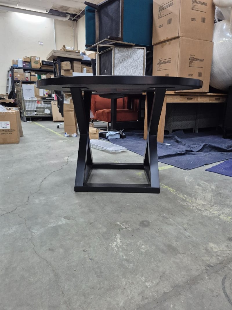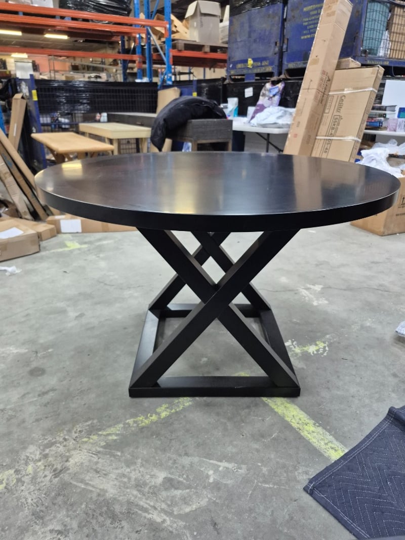 Table dark wooden laminate with x pattern base