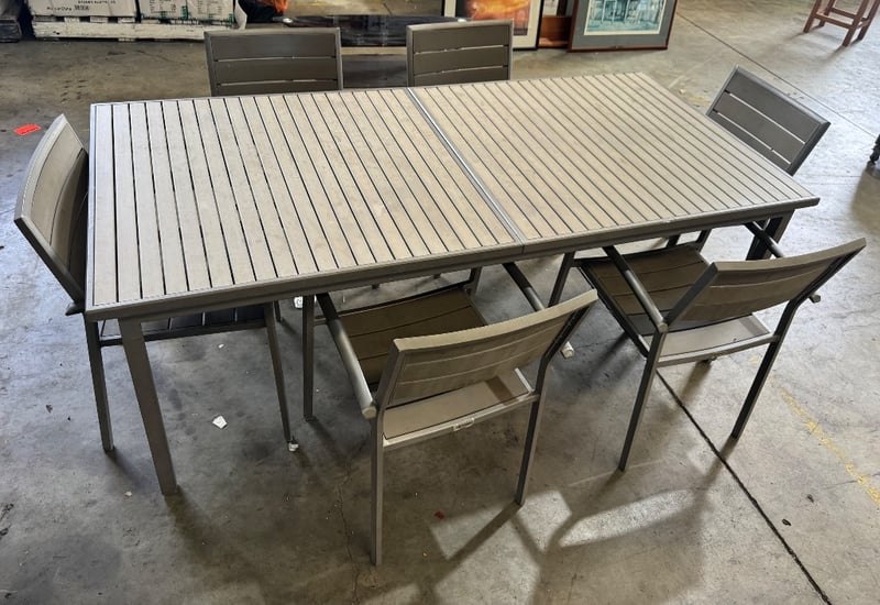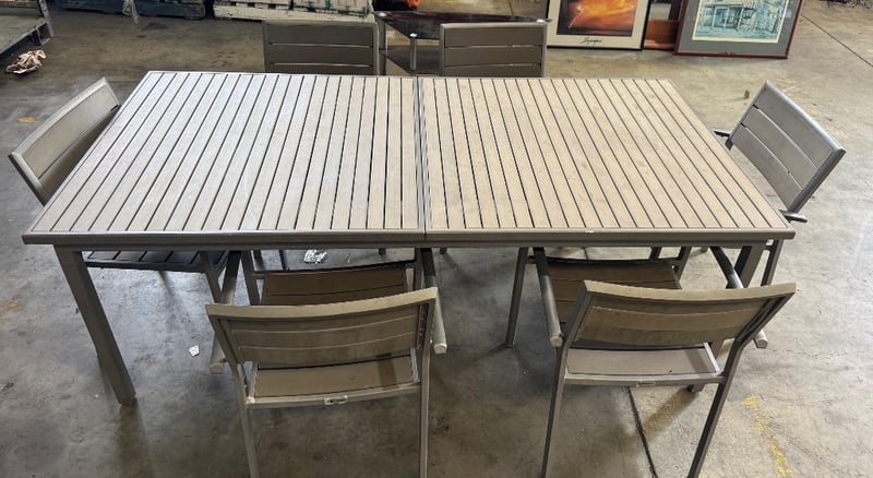 Metal frame table and chairs Note: minor cleaning required, inspection recommended