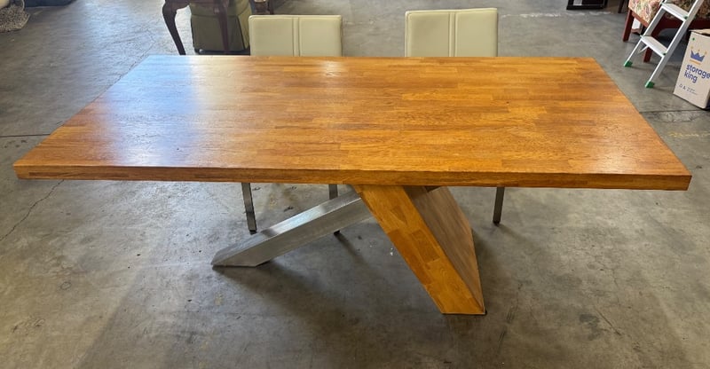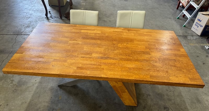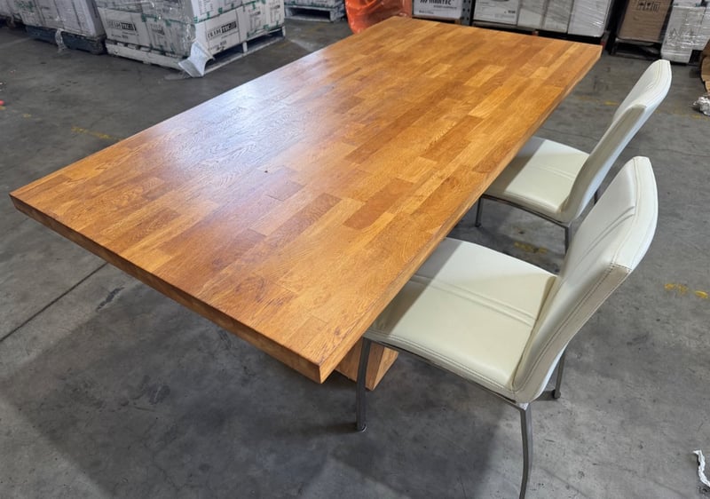 Dining table and 2 dining chairs Dimensions: 195cm x 100cm x 78cmNote: Sold as Lot