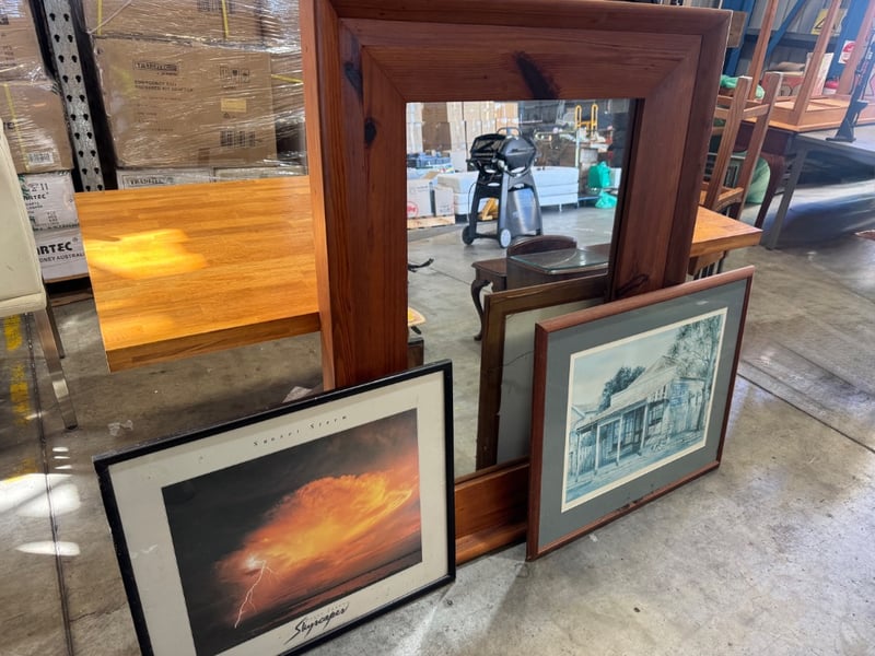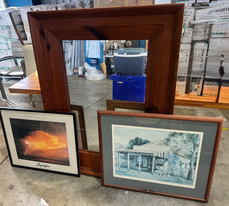 Mirror and 2 x artworks Mirror Dimensions: 141cm x 106cm