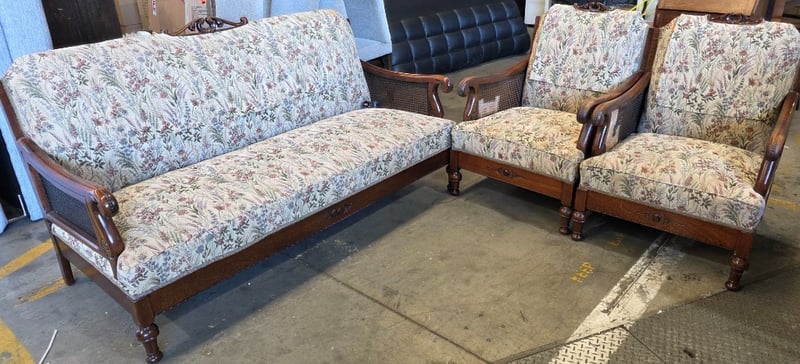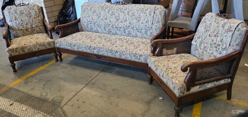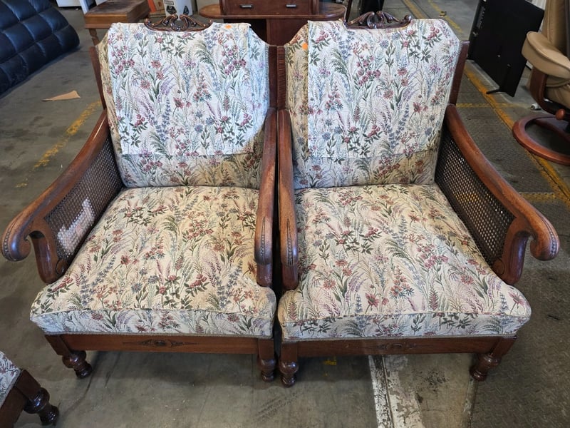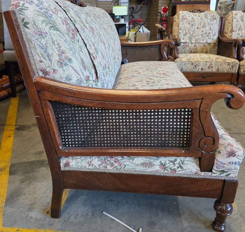 Wooden Couch and Chair setCouch Dimensions: 170cm (L) x 75cm (W) x 90cm (H)Chair Dimensions: 66cm (L) x 75cm (W) x 95cm (H)Condition: used