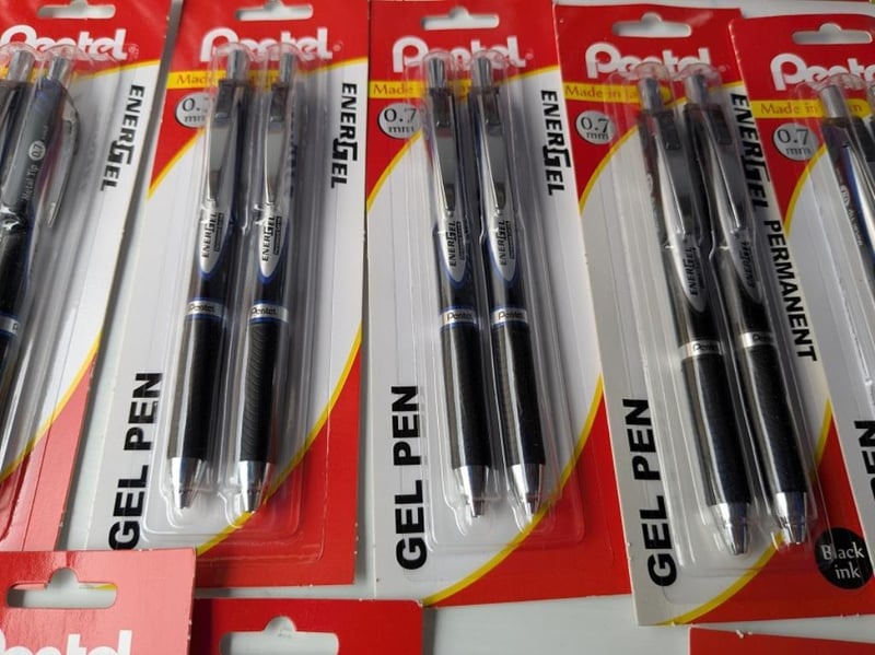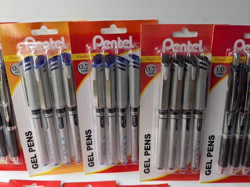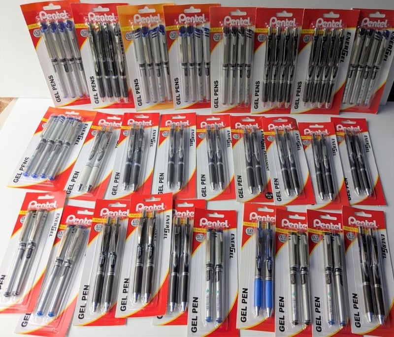 Bulk lot of Pental gel pens, $280 approx value, qty of 27 packs (sold as lot)