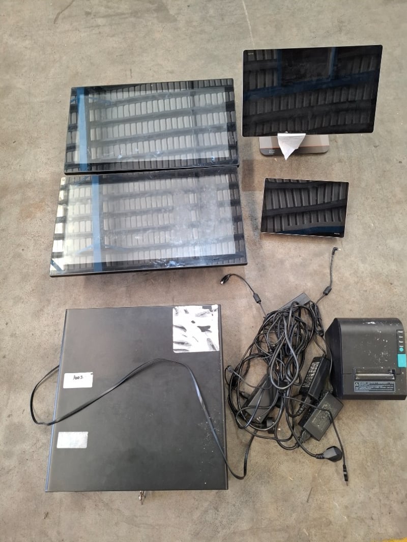 POS system, 2 x AIO monitors, 2 x Sunmi monitors, 1 cash drawer, 1 x printer Sold as lot