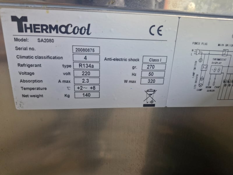 Cold food display cabinet, Thermocool, SA2080, 240v 860mmH x 1510mmW x 8100mm Note top missing