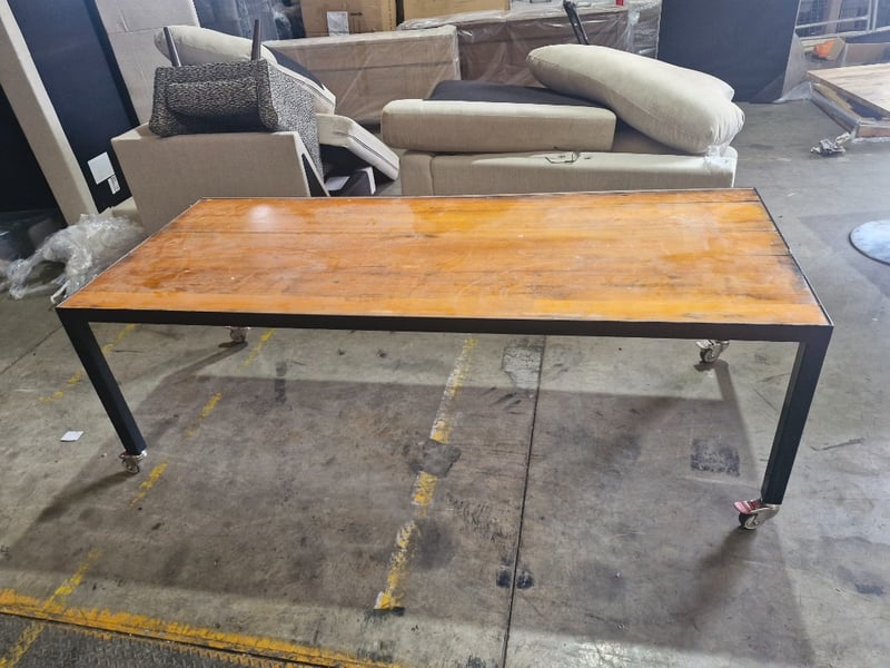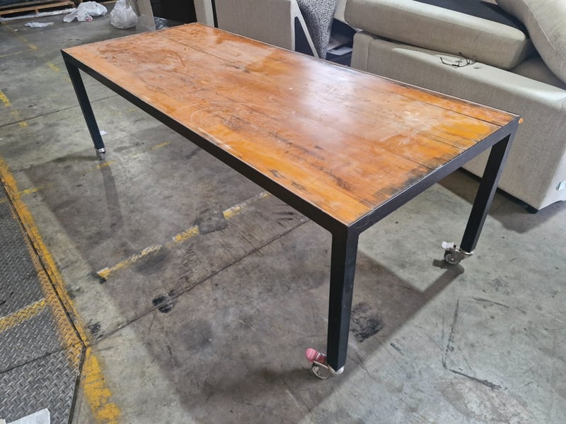 Table, mobile on castors, timber top to metal frame