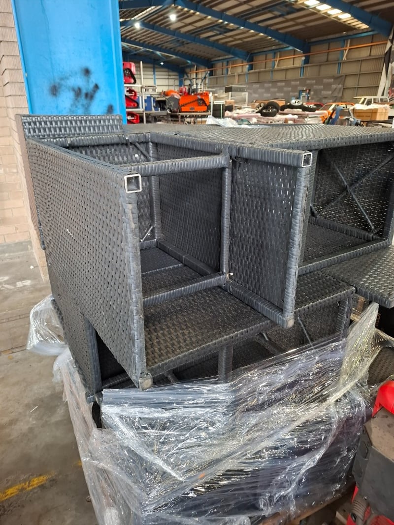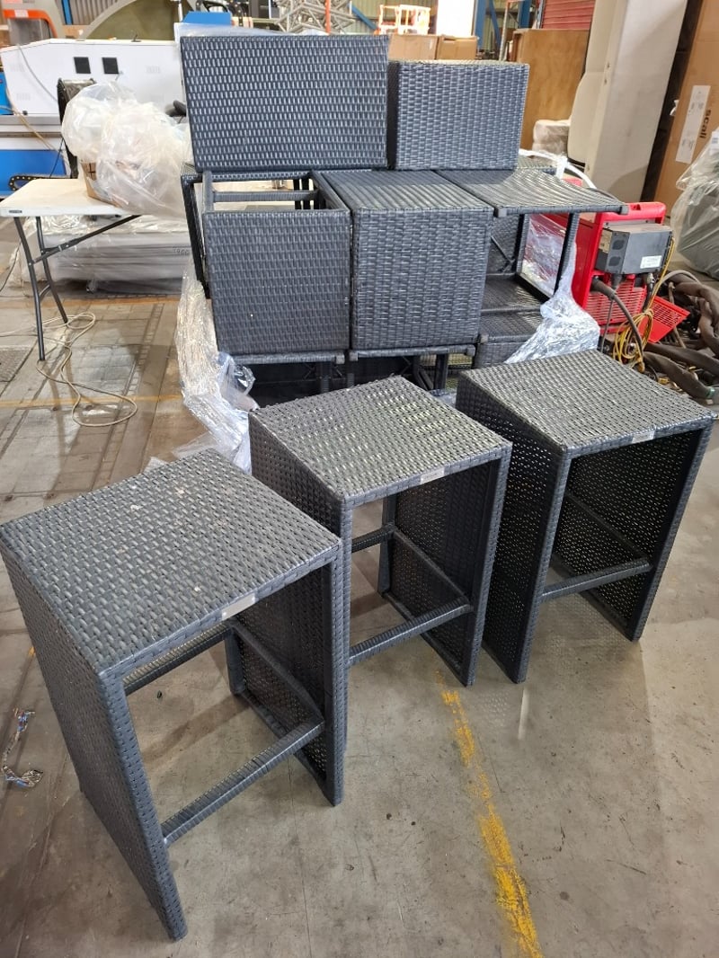 Pallet Lot of out doors stools, plastic, metal frame , color black